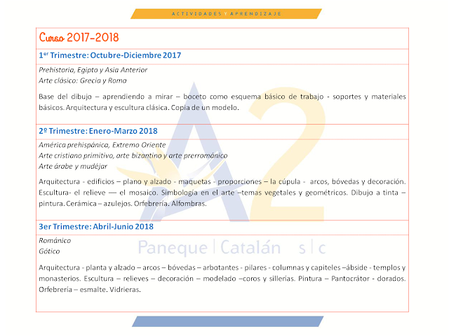 Como sabéis, el objetivo de la Escuela es complementar la formación artística y trabajar para mejorar las habilidades psicosociales, para ello durante el curso nos moveremos por diferentes etapas de la historia del arte de forma cronológica, conociendo las obras más importantes de cada época y experimentando con diferentes técnicas, herramientas y materiales de trabajo.